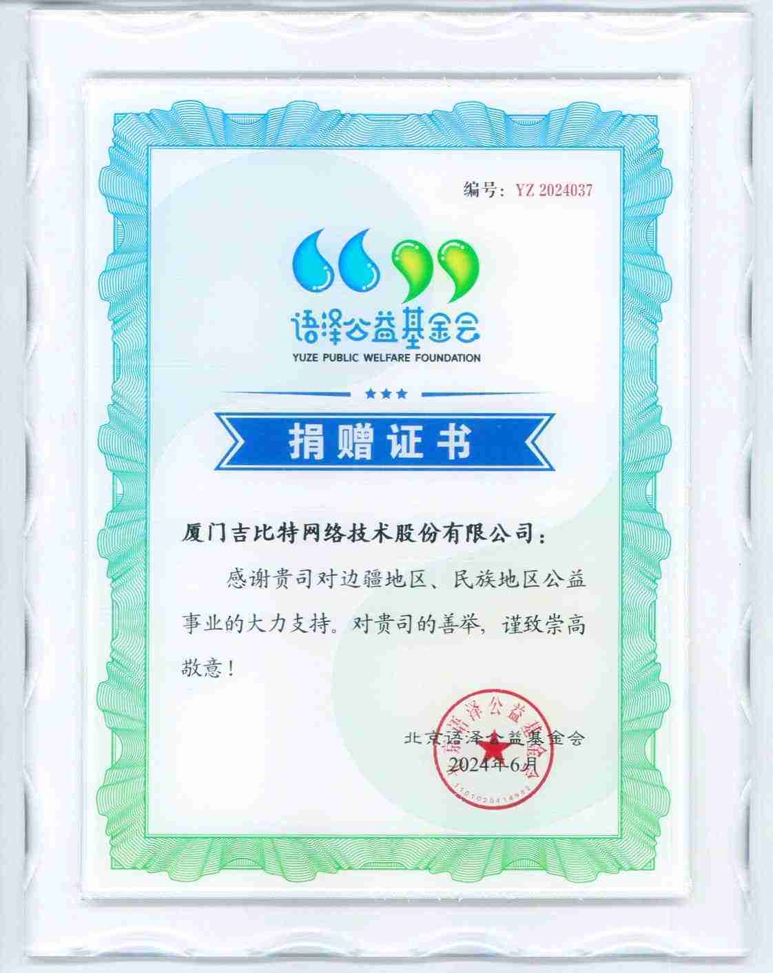 圖4::::公益活動主辦方為公司頒發的捐贈證書