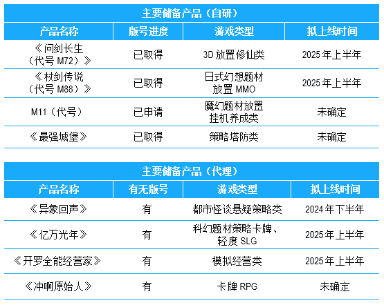 公司儲備多款新品,,,期待為玩家解鎖更多新鮮體驗,,,,部分產品如下表所示::