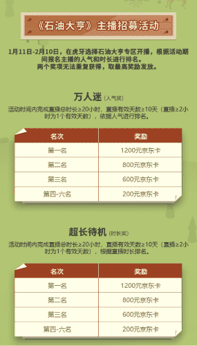 《石油大亨》與虎牙直播平臺攜手,,正式開啟“油王”爭霸賽活動,,,,還有精英主播招募活動,,,萬元獎金獎品等你來??!
