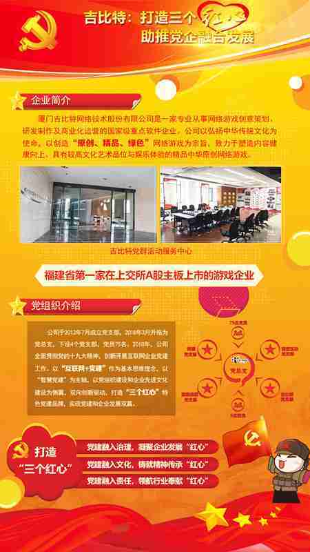 未來公司將全面學習貫徹習近平新時代中國特色社會主義思想和黨的十九大精神,,,持續強化“互聯網+黨建”的思維理念,,,,以“智慧黨建”為主軸,,,以黨組織建設和企業先進文化建設為側翼,,,,雙向創新驅動,,,引領有信仰、、有情懷、、有價值的新時代游戲研發運營,,,,在不斷發展壯大的同時,,成為行業的“紅色標桿”,,,,實現黨建和企業發展雙贏。。。