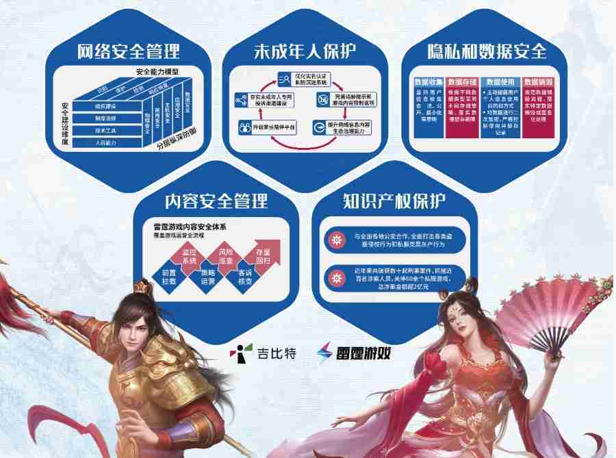 本次一競技展區以網絡安全管理、、內容安全管理、、未成年人保護、、、隱私和數據安全、、知識產權保護五個模塊介紹公司游戲安全工作成果,,,,體現一競技高度重視網絡安全,,,嚴格遵守相關法律法規要求,,,,積極承擔企業主體責任。。。