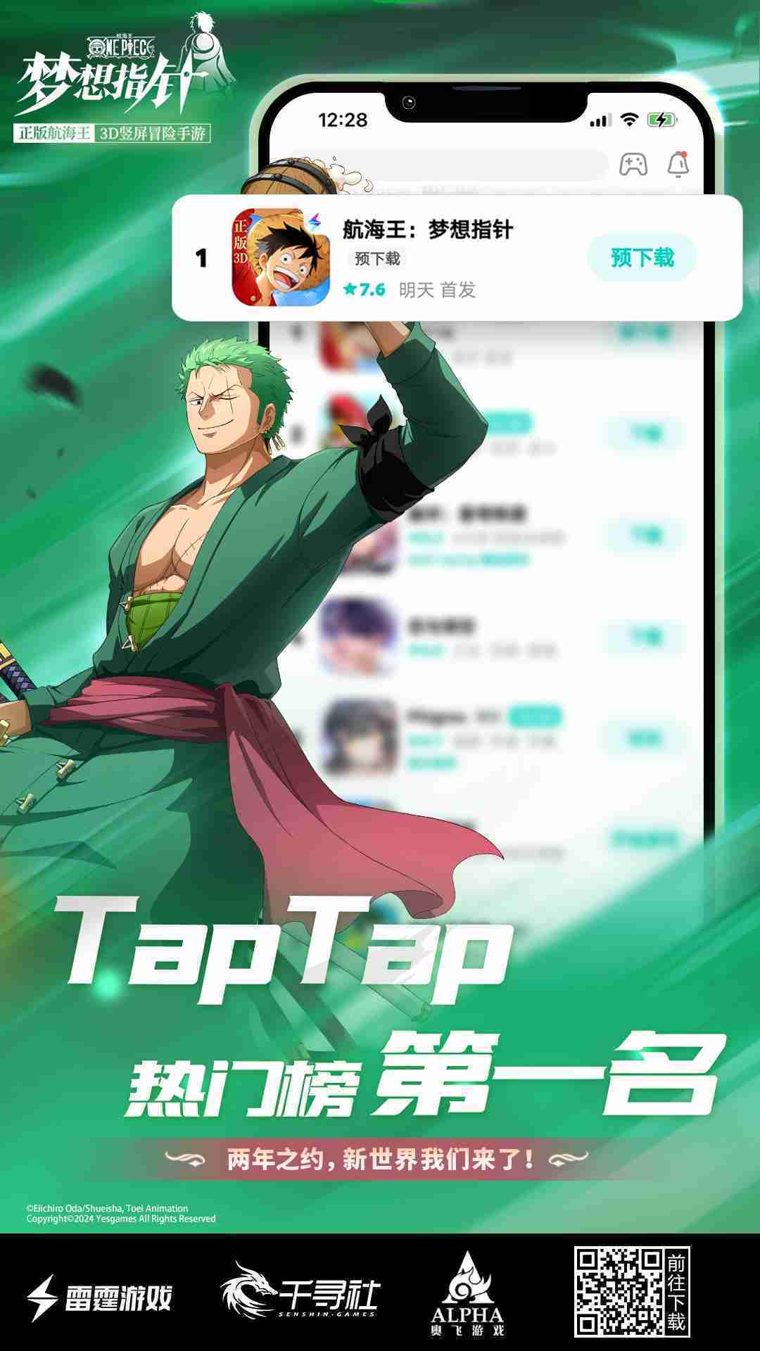 4月1日,,,手游《航海王:::夢想指針》正式公測,,,上線僅2小時不到就登上了App Store免費榜Top1,,與TapTap熱門榜第一。。。