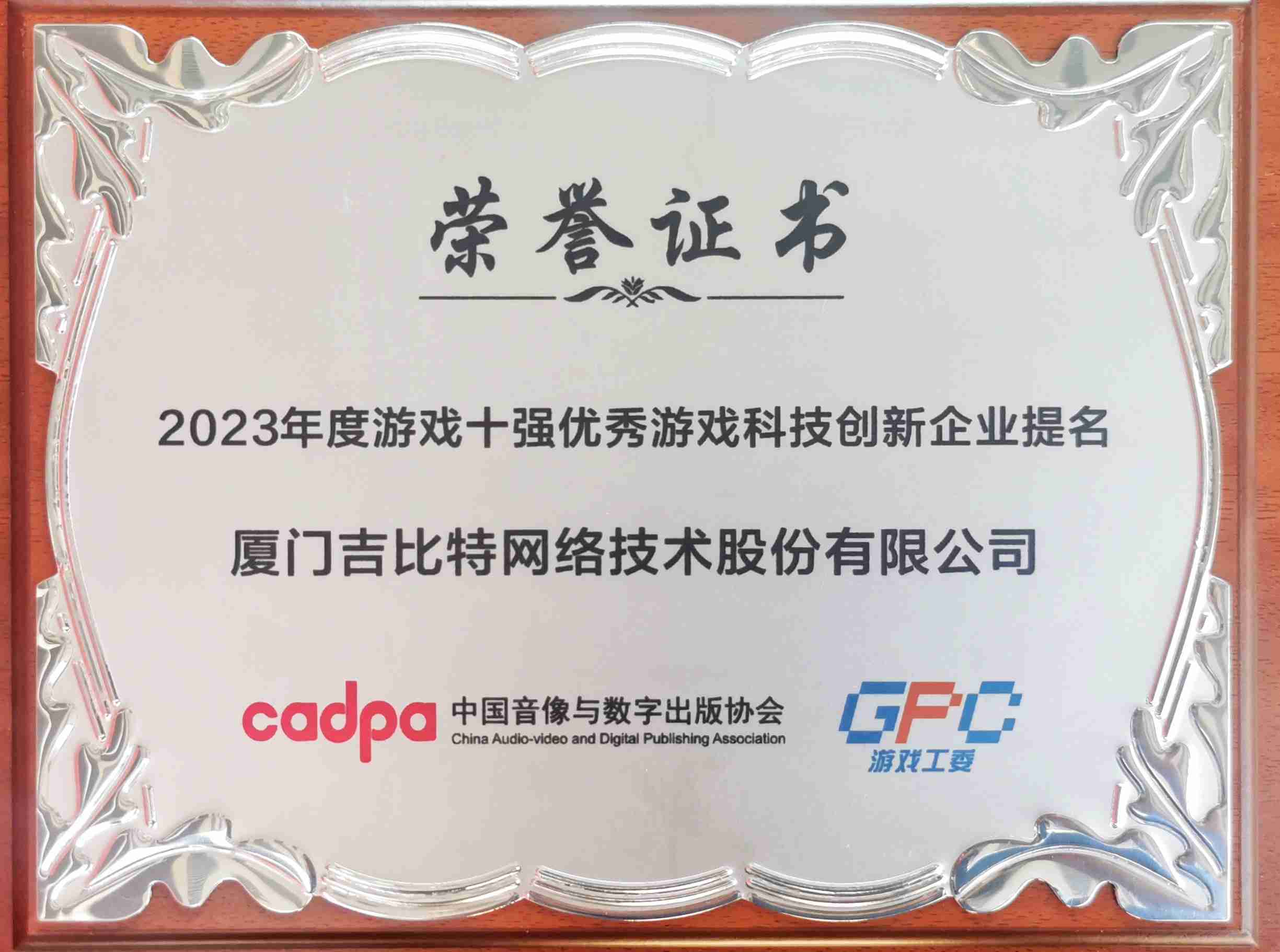12月14日,,由中國(guó)音像與數(shù)字出版協(xié)會(huì)主辦,,中國(guó)音數(shù)協(xié)游戲工委、、、中國(guó)游戲產(chǎn)業(yè)研究院承辦的“2023游戲十強(qiáng)”評(píng)選結(jié)果正式發(fā)布。。。。“游戲十強(qiáng)”在我國(guó)游戲產(chǎn)業(yè)界享有“中國(guó)第九藝術(shù)封神榜”美譽(yù),,其評(píng)選秉承公開、、公平、、、、公正的原則,,,,因其代表性、、、影響力、、、、公信力被譽(yù)為中國(guó)游戲產(chǎn)業(yè)最高獎(jiǎng)項(xiàng)。。。。繼2022年度入圍后,,一競(jìng)技今年再次獲得“優(yōu)秀游戲科技創(chuàng)新企業(yè)”提名,,研發(fā)創(chuàng)新實(shí)力獲得肯定。。。