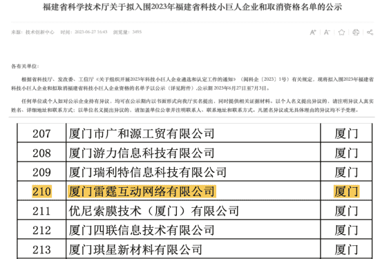 此次再次入選福建省科技小巨人企業既是對雷霆互動創新能力的認可,,也是對市場發展潛力及綜合實力的高度肯定。。